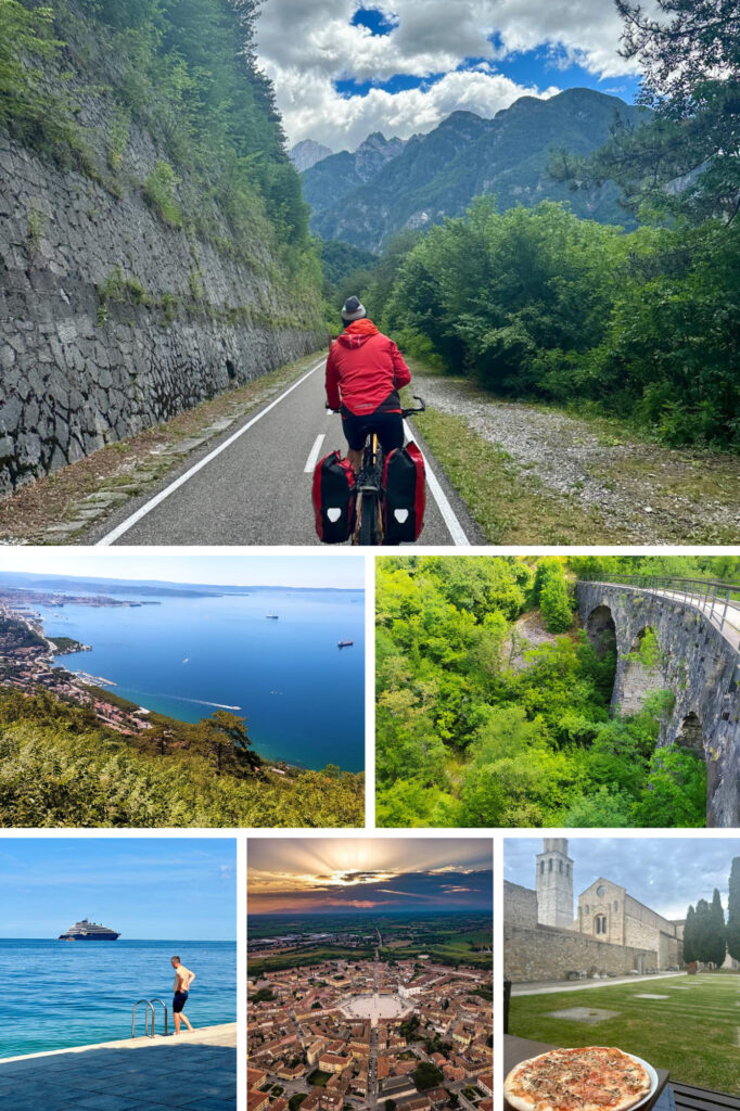 Przekraczaliśmy nie tylko granice wielu państw, ale też swoich możliwości, pnąc się pod góry własnych ambicji.. A, tam na, szczycie zazwyczaj czekało nieznane, czasem też chmura deszczu i polana wzruszeń albo po prostu bar z Aperolem. Jechaliśmy przez pola, przełęcze, winnice, rzeczne bulwary i leśne przecinki, mosty nadziei i wioski zapomniane przez czas.. Przecinaliśmy Adriatyk szybką łodzią, na który biletów ponoć nie było, z rowerem elektrycznym, którego na pokład nie można było wziąć